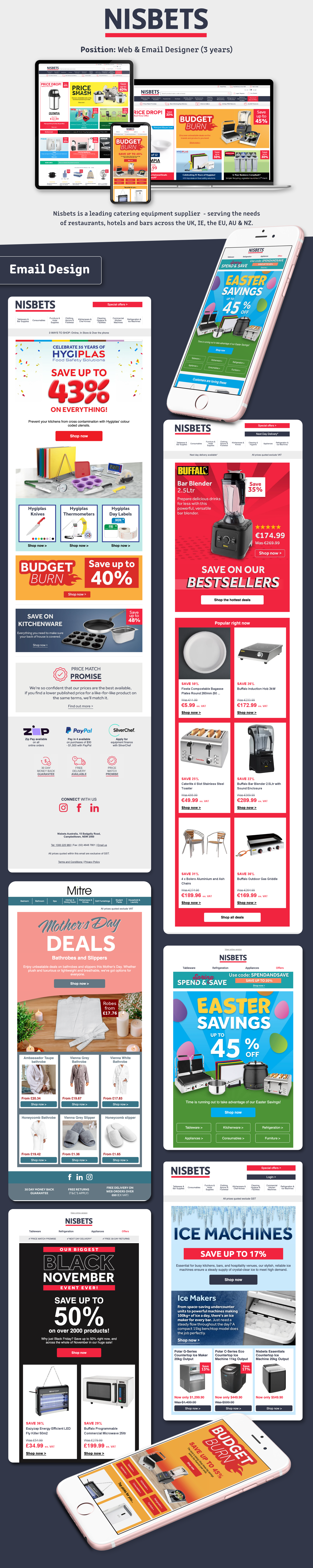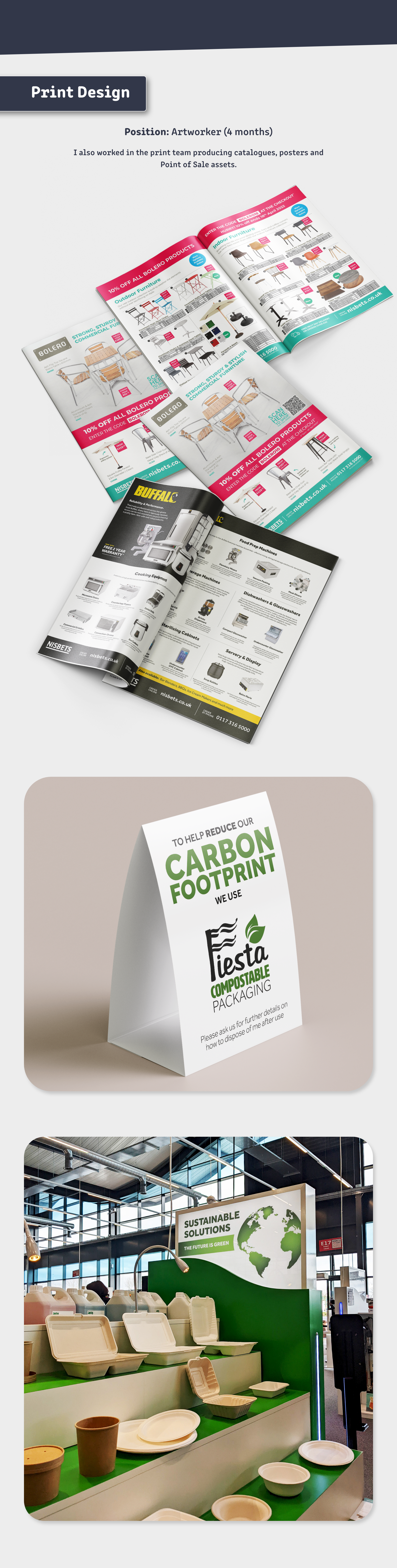 A selection of work I produced in my role as web & email designer, as well as an artworker in the print studio, working in-house at Nisbets.